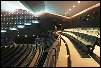 ![]() Oprócz widowni na parterze (471 miejsc) jest także balkon, na którym zainstalowano podwójne kanapy (dodatkowo 128 miejsc) - to dla zakochanych i lubiących się przytulać :-) |