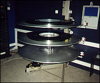 ![]() Platter, system projekcji poziomej z jednego projektora, z zasobnika 3 talerzowego AWR - pojemność 8000 metrów filmu (4,5 godzinna projekcja). Trzeci talerz służy do niezależnego przygotowania drugiego filmu. |