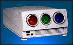 dzięki przepuszczeniu światła przez 3-kolorowy (RGB) filtr kołowy.