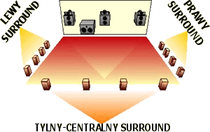 przestrzennego w filmach. Nowością jest tutaj dodatkowy kanał tzw. tylni surround. Głośniki tego kanału umieszczane są dokładnie z tyłu sali kinowej (nie po bokach). System ten jest w pełni kompatybilny z jego starszą wersją 5.1. Filmy nagrane z Dolby Surround EX